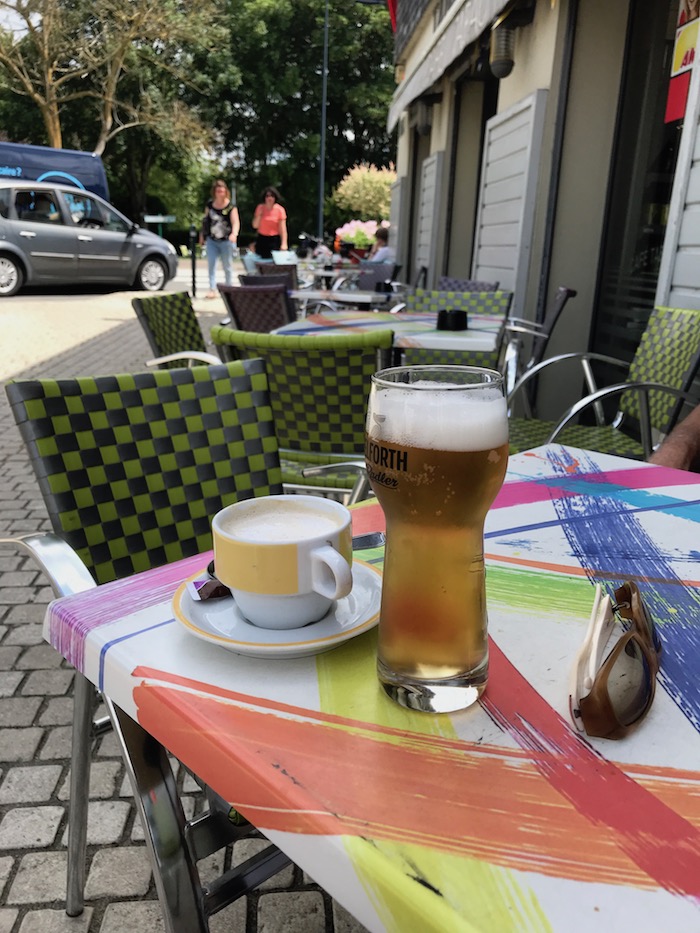 beer and coffee on bike ride Published June 16, 2018 at 700 × 933 in Note Number 56…All about our Trip to France… A welcome beer and coffee break
