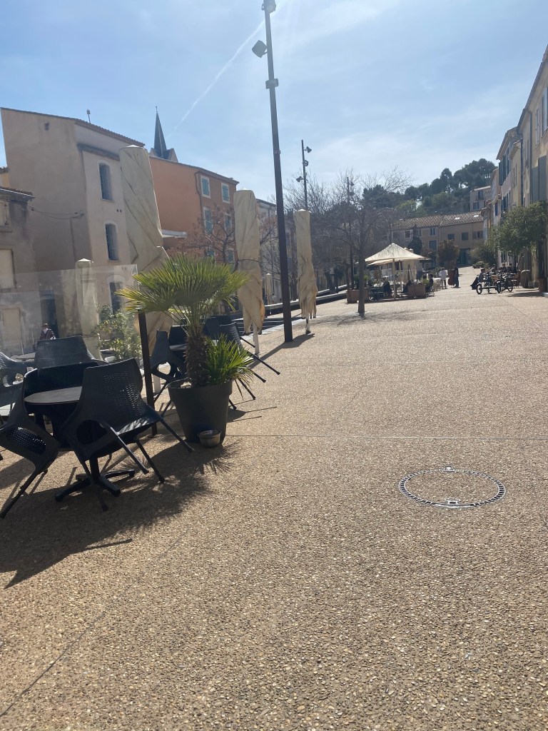 We drove first to the beach, La Plage, where we walked along the sand and collected a few shells. We took a coffee at the La Côte Rêvée hotel which was a little pricey at €4 for a tiny cup but hey…we’re in the South of France – ON THE COAST, we accepted the cost and handed over all our change which wasn’t quite enough but he took €7 and left me with 50 cents. The thing was, we’d left our cards and money locked in the boot of our car while we walked and we couldn’t be bothered to walk back and get it — anyway, I needed the loo.
