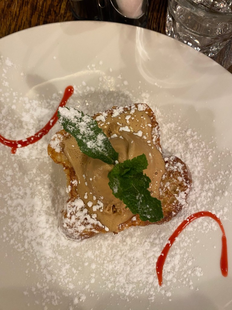 We found the restaurant La Vache Au Comptoir just around the corner from the hotel and we struck lucky. Not only was the food extremely good the owner was friendly and genuinely interested to speak with us. His English was excellent (he’d lived in America) and he told us all about his new venture, a Créperie in Saint Germain-En-Laye on the outskirts of Paris. He’d had enough of being in the city and since covid it had been increasingly difficult making any profit. We hope to visit him when we’re travelling back to the UK sometime. Pain Perdu by the way is made in many different ways, it’s also known as French Toast. I think using Brioche is the best way of making it, then it’s eggs, sugar and milk mixed together. Dip the brioche (or bread) in the mixture and then fry in butter. Serve with vanilla or salted caramel ice-cream. Well, that’s how I would make it. It has very few calories of course 😋