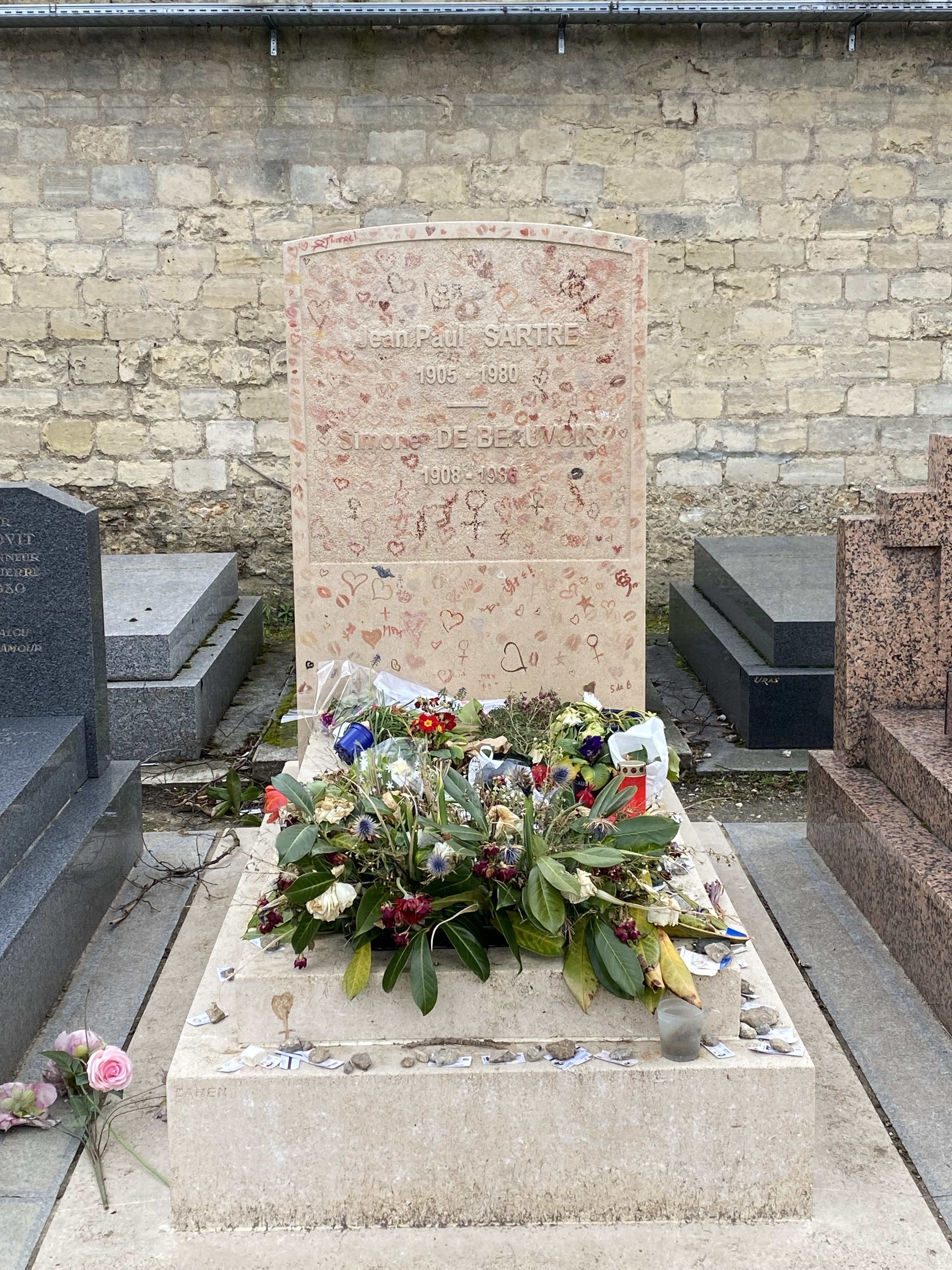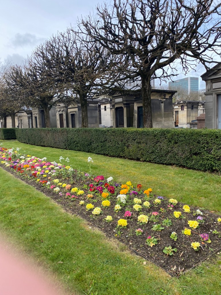 The next day was Good Friday and we weren’t meeting up with our daughter and granddaughters until lunchtime. We stored the bags at the hotel and took a walk to and around the Montparnasse Cemetery. Many famous people are buried in this enormous place and it seems there is room for every religion, culture and race. It was fascinating to stroll around. I always love reading the inscriptions on the headstones I’m fascinated by names, dates, ages and information that you can discover in these places. We looked first for Samuel Beckett then Jean Paul Sartre, Simone de Beauvoir, Guy de Maupassant among others