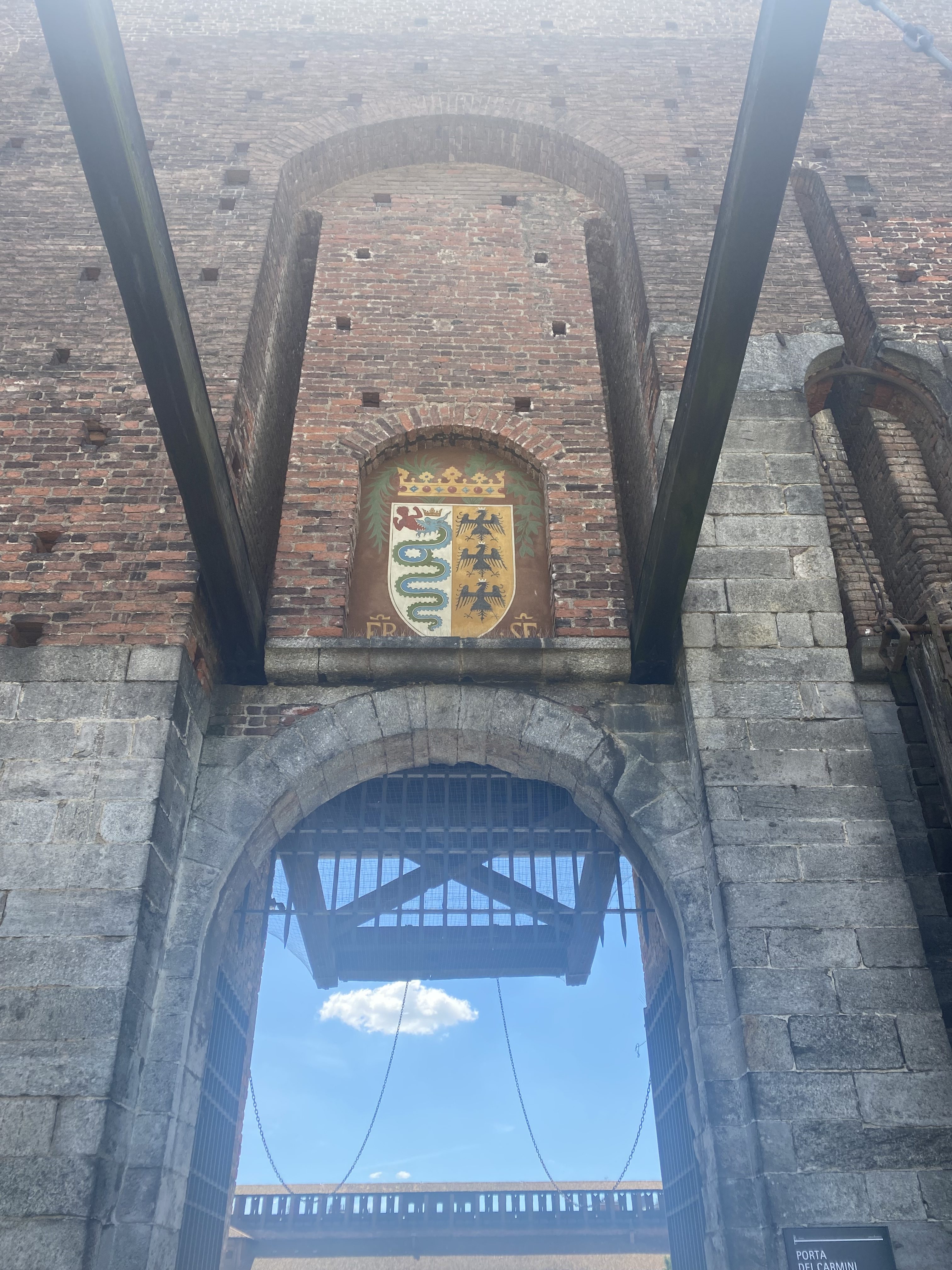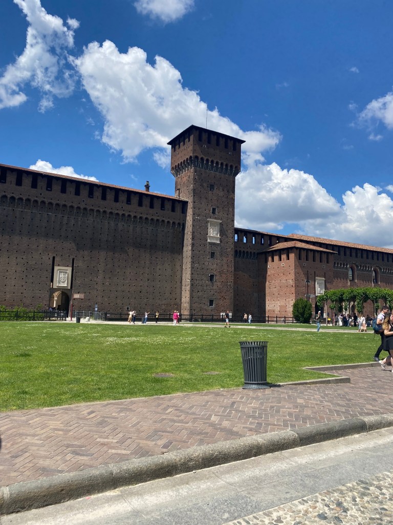 One day in Milan was not nearly enough. I really thought it was a beautiful city and would like to return if possible. When I was searching for a website link for the Sforzesco Castle I discovered there were a multitude of palaces and castles to choose from. The Man and I simply brushed the surface of this fascinating city which has had a long and turbulent history from the Viscontis — whose emblem is a snake swallowing a baby — to the Sforzas who controlled land way down into central Italy including Le Marche where we used to live.