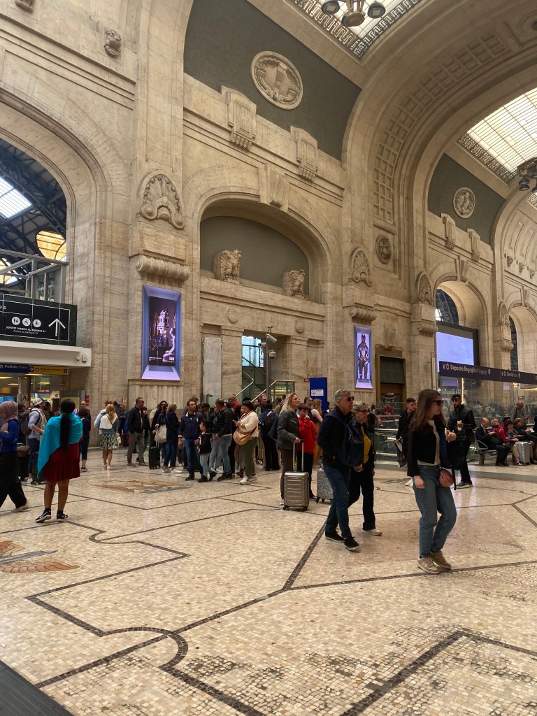 Tessa gave us some information about trains into the centre and because we’d managed to leave the bike safely hidden away, the next day, we drove to Monza station. There was a little bit of trouble working the ticket machine but fortunately the train was late so we still caught it and within 12 minutes we were walking out of the magnificent Milan Centrale Station.