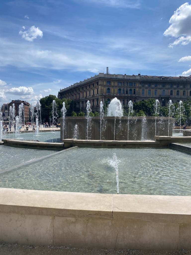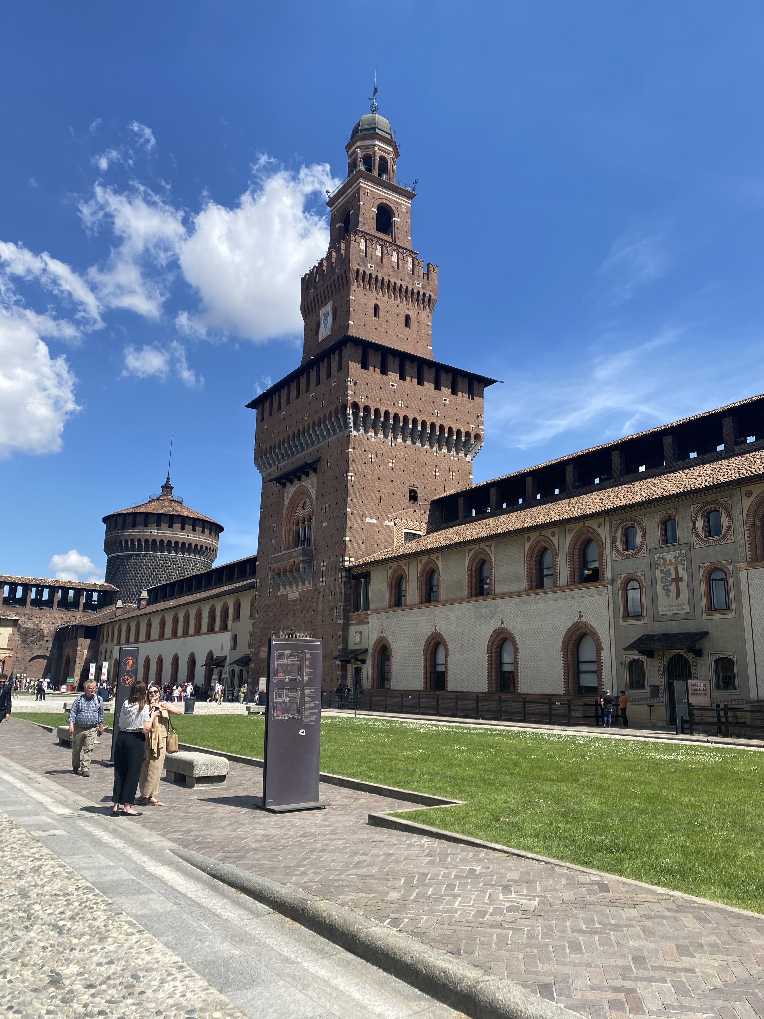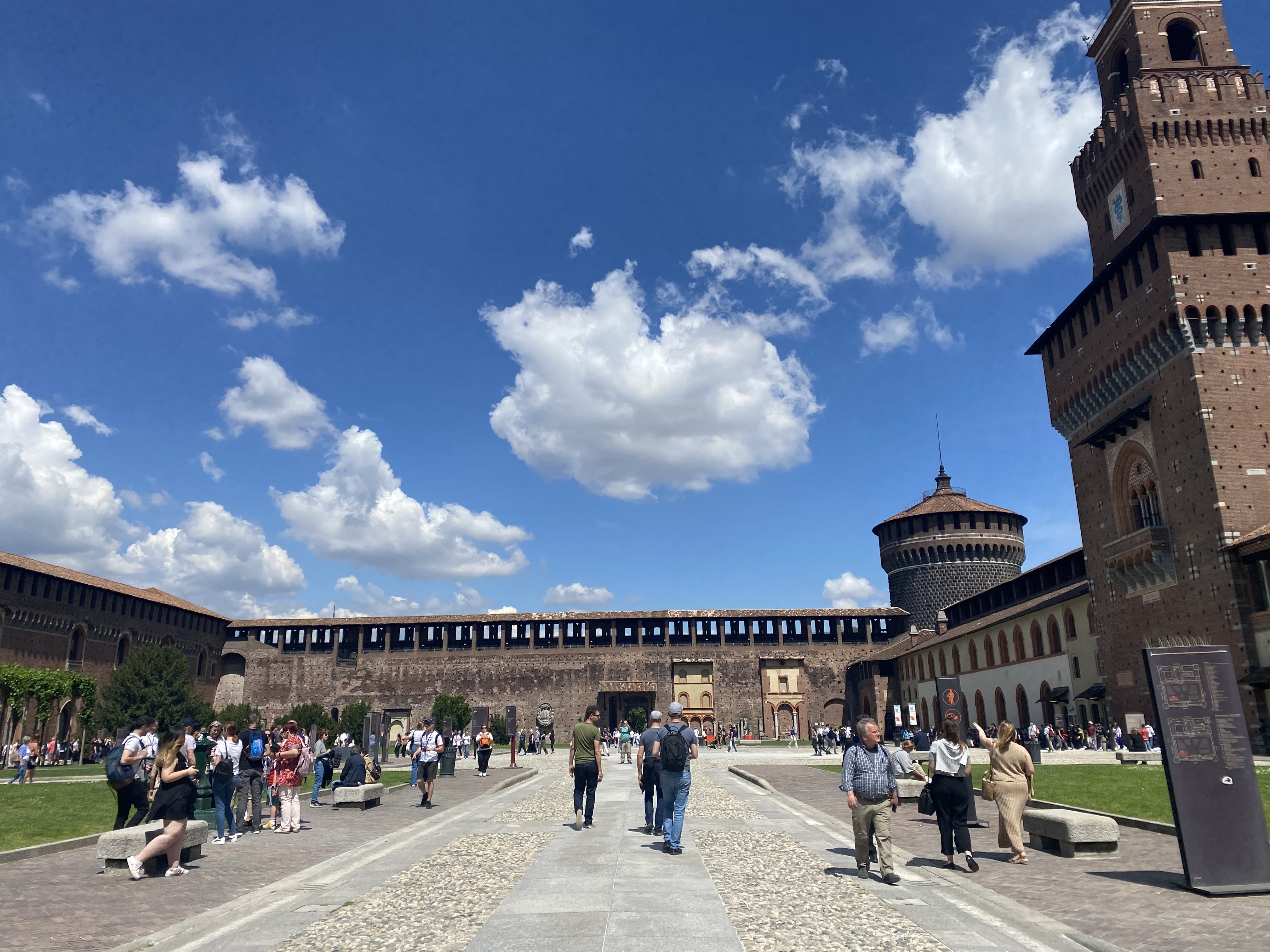 It’s flat to walk around, the centre feels quite small and there are many roads with trees and green areas. Its streets seemed clean (at least the ones we walked down) and as the second largest city in Italy it was busy but many of the avenues are quiet. We were there on a Thursday and it was Ascension day, the area around the Duomo was particularly busy. We didn’t go into the cathedral, but another time I would definitely do that. The train was busy both in and out of the Centrale Station but the trip was short so it didn’t matter. We walked about 20,000 steps that day and enjoyed a wonderful lunch in a traditional trattoria at no great cost. After lunch we walked to the Sforzesco Castle and then took the metro back to the central Station.