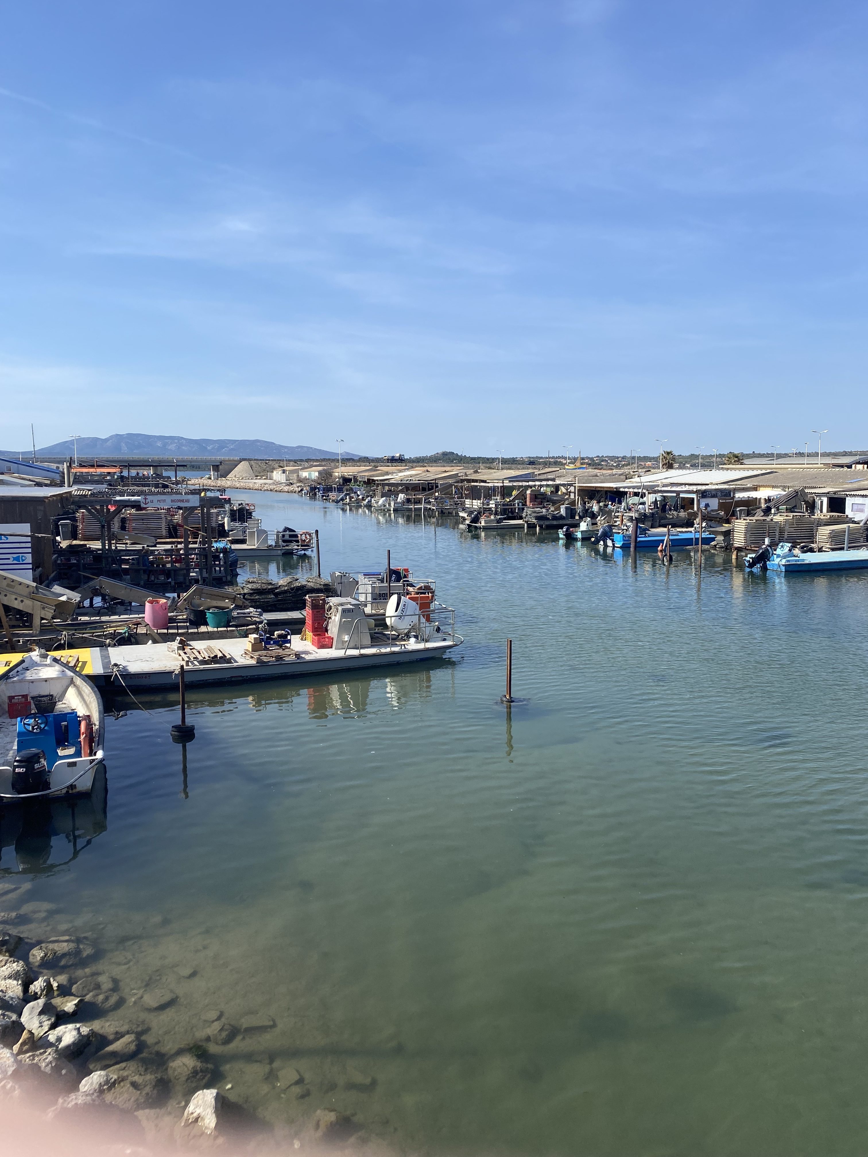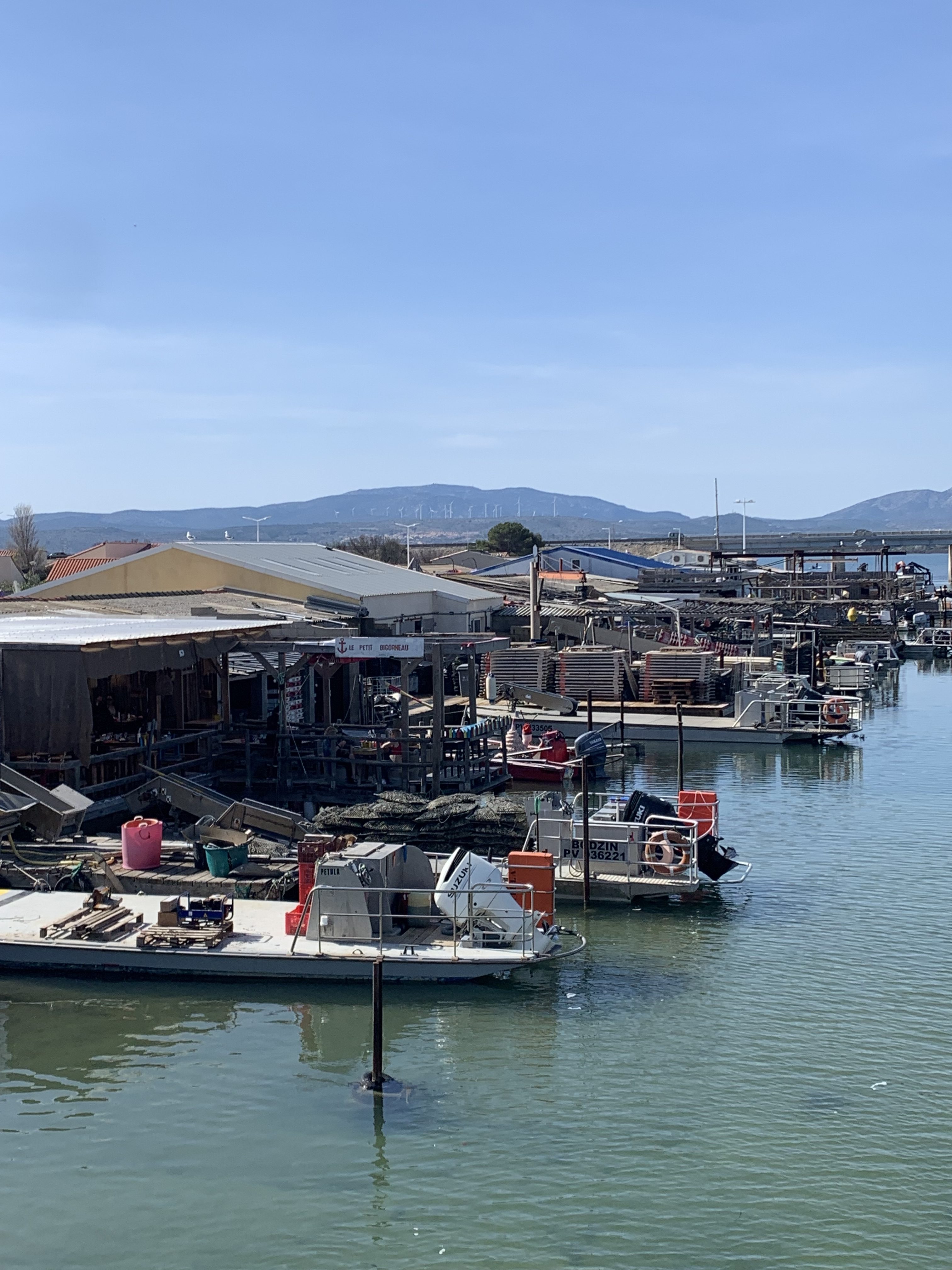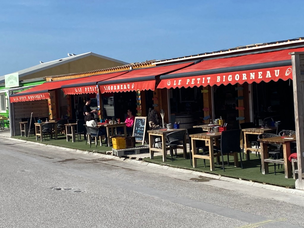 The area is expansive and mostly flat. As far as I can make out there are three main parts to Leucate; the village, the beach and the port/marina. We went to all three plus a small fishing harbour between the beach and the port area, with around 17 fish restaurants, which are housed in shacks…that sounds awful but I can’t think of another way to describe them. When I stood on the bridge and took the photograph I was reminded of our holidays in Thailand and other areas of South Asia. We didn’t eat in any of the restaurants because we’d already had our lunch by the port.