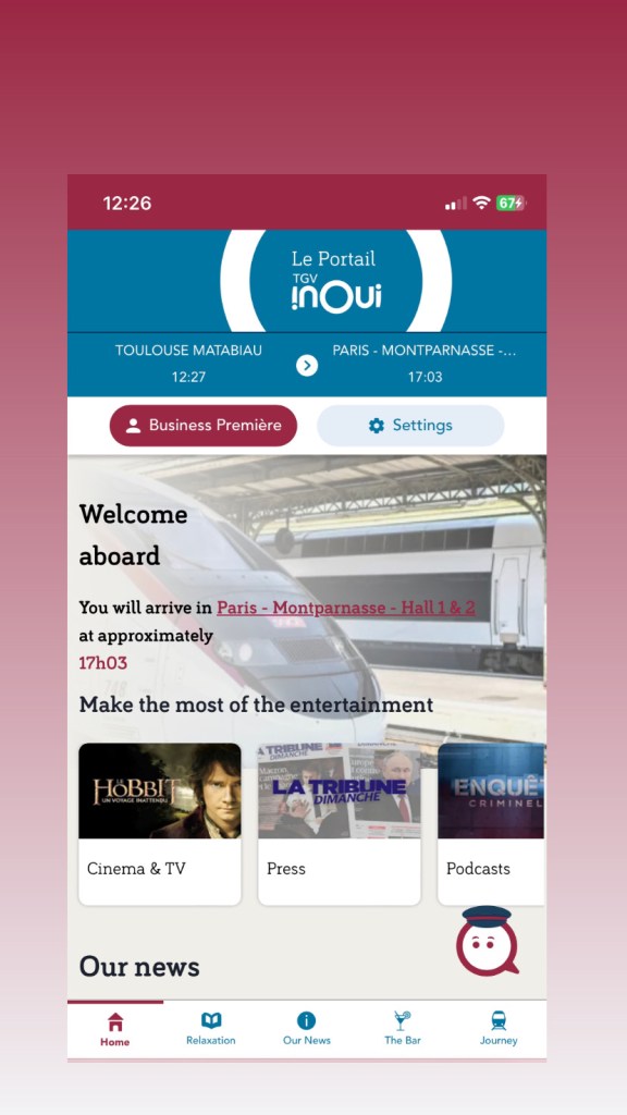 We really couldn’t fault the French railway system. Efficient, fast and clean. The four-and-a-half- hours just whizzed by in comfort.