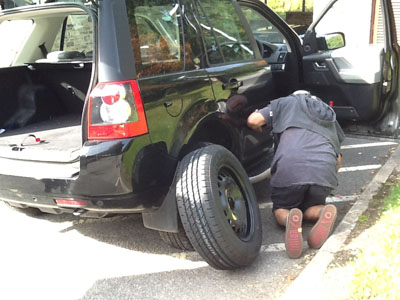 Short lived though! I was soon brought back down to earth by the sight of our car with a puncture. But it was efficiently fixed by Steve. Jean and I gave him a gold star, excellent work!